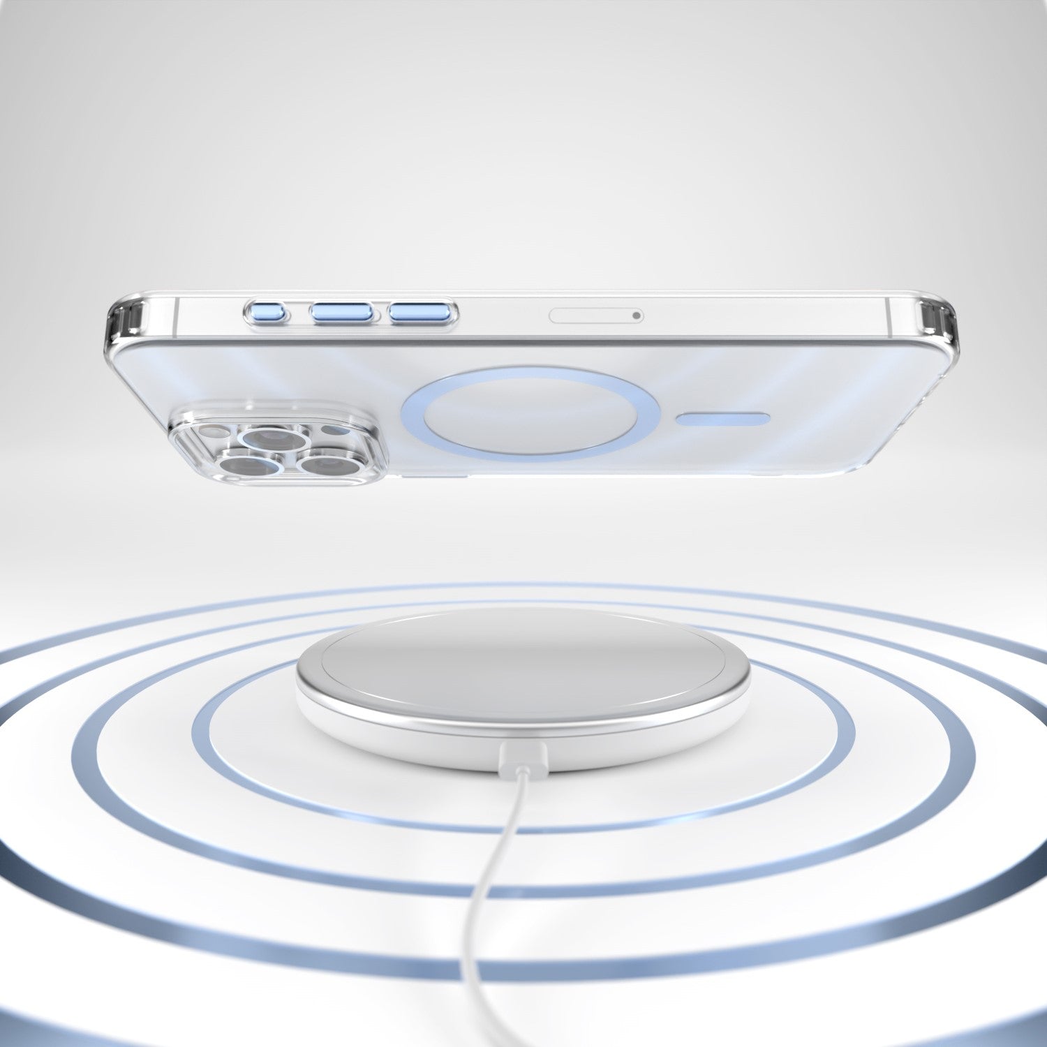 Construcția subțire, cu o grosime de 2,5 mm, nu mărește dimensiunea telefonului, iar marginile ridicate protejează camera. Datorită magnetului integrat (2800 Gs), husa este compatibilă cu MagSafe și nu limitează funcționalitatea suporturilor auto.