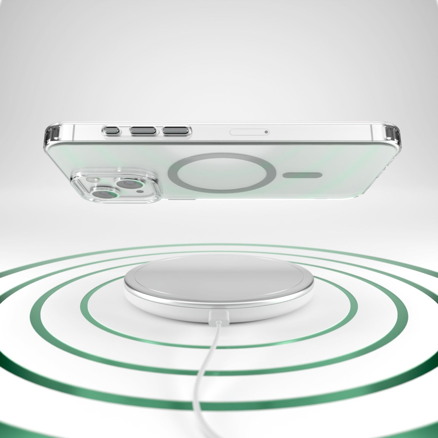 Construcția subțire, cu o grosime de 2,5 mm, nu mărește dimensiunea telefonului, iar marginile ridicate protejează camera. Datorită magnetului integrat (2800 Gs), husa este compatibilă cu MagSafe și nu limitează funcționalitatea suporturilor auto.