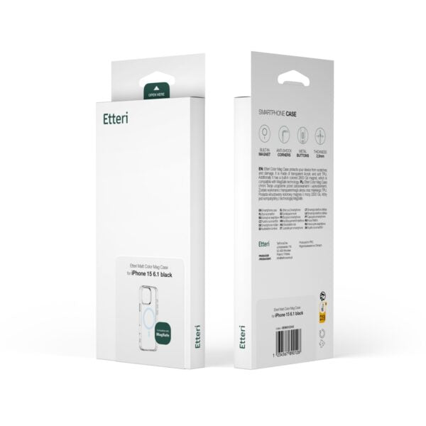 Etteri Color Mag Case este o husă elegantă, realizată din TPU flexibil și spate dur din PC, care se potrivește perfect telefonului. Spatele transparent evidențiază designul original al dispozitivului, iar butoanele metalice și accentele de culoare adaugă un plus de eleganță.