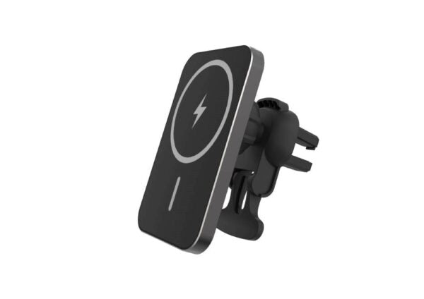 Descriere Vă prezentăm suportul Forever cu încărcare inductivă – o soluție modernă și convenabilă pentru utilizatorii de dispozitive Apple compatibile cu MagSafe! Datorită tehnologiei avansate de încărcare wireless de 15W și unei eficiențe de peste 75%, suportul asigură încărcarea rapidă și fără probleme a telefonului în timpul condusului. Fabricat din ABS reciclat și aluminiu, este durabil, ecologic și elegant. Dimensiunea sa compactă (91 x 61,5 x 70,5 mm) și montarea pe grila de aerisire îl fac potrivit pentru orice interior auto, iar cu o distanță de încărcare mai mică de 5 mm, telefonul se încarcă chiar și în husă.
